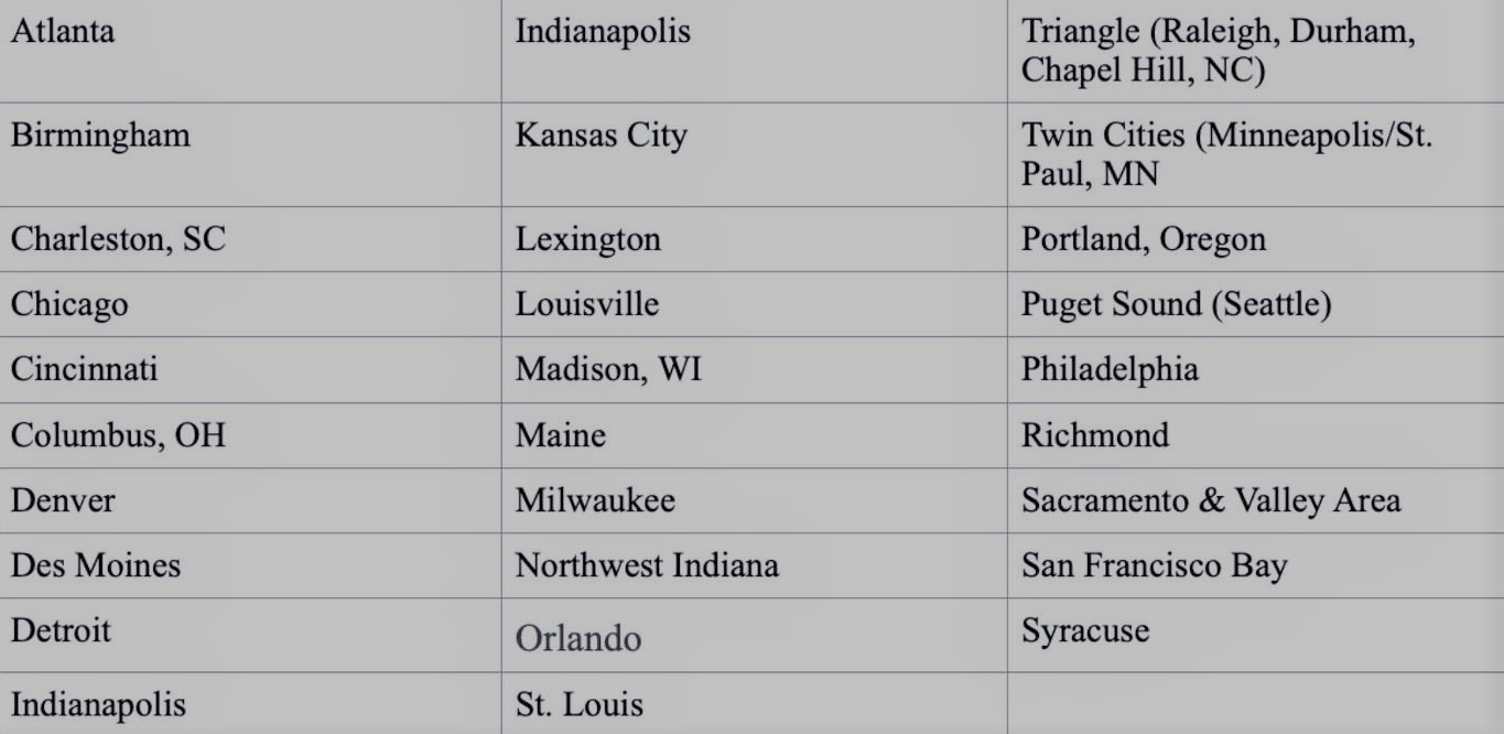 These are all the metro areas with the hard hats with hearts initiative;
